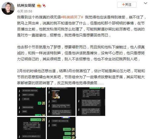 最近网络上可是炸开了锅,大家都在热议一个视频,那就是创造营中的韩美娟的爆料视频!这可是娱乐圈的一大热点,咱们一起来聊聊这个话题吧。